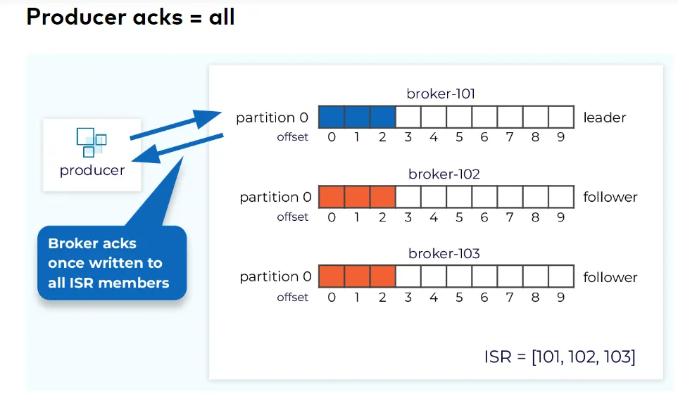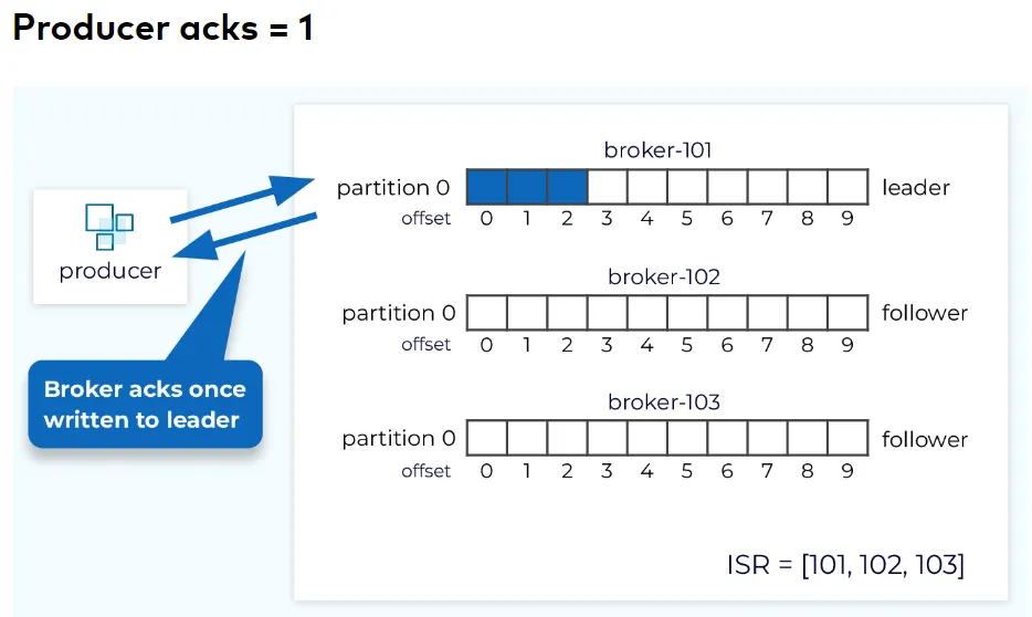 The durability is much more improved but there is a little chance that the message lost => when leader downtime.